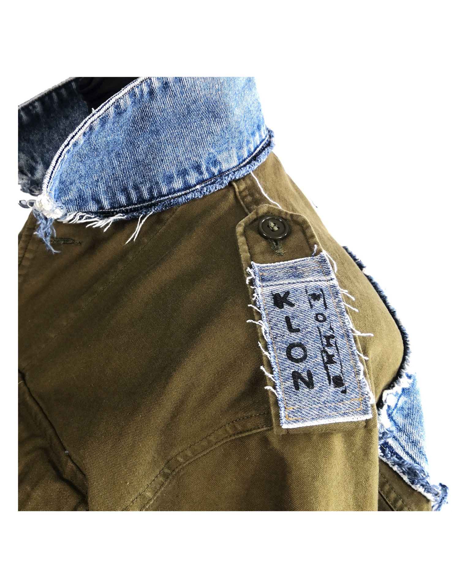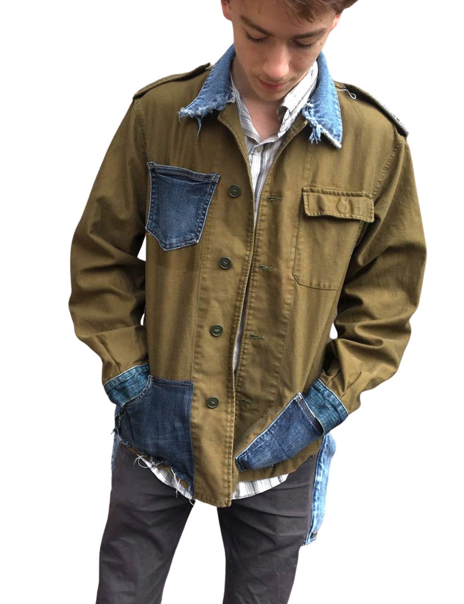 Vojenská bunda v symbióze s denimem, spojeným nenávratně se stylem Hiipie.